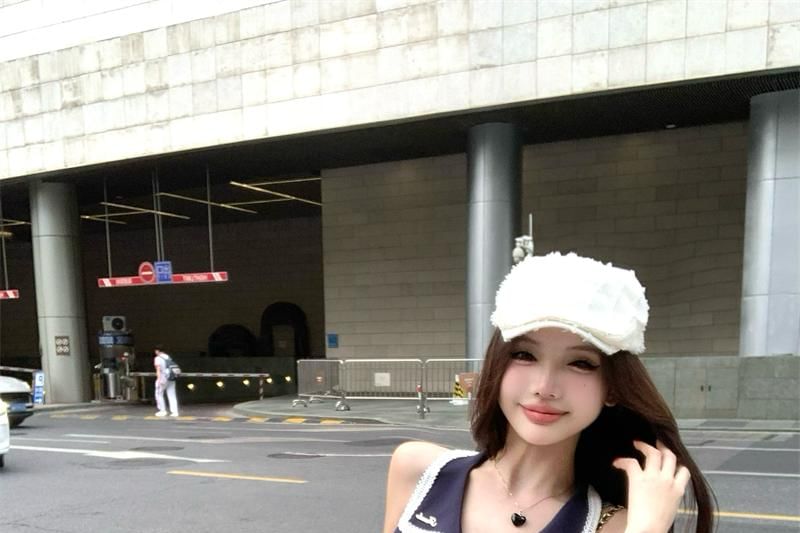 Mini Pleated Rise Skirt A-Line / High Striped Sleeveless Blouse Bow Collar