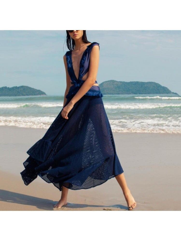 Navy Blue Sleeveless Backless Women's Beach Dress