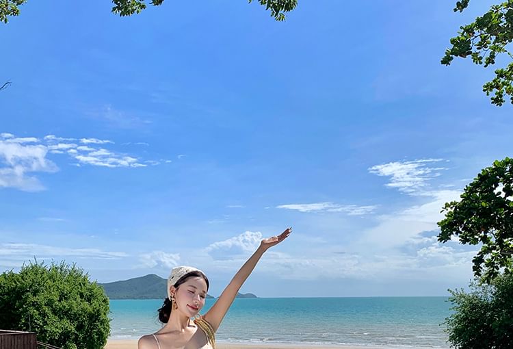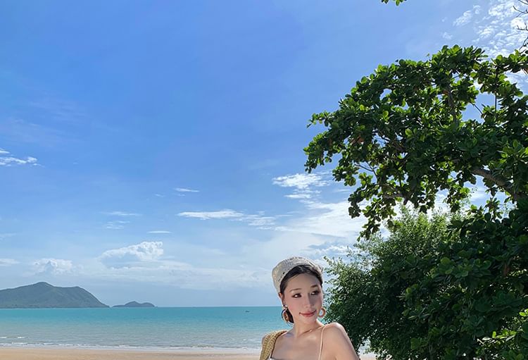 Spaghetti Strap Square Neck Floral Print Bow Accent Open Back Maxi A-Line Dress