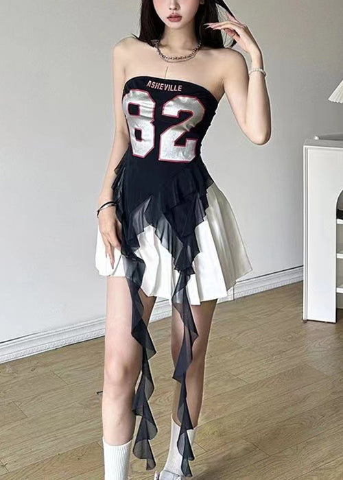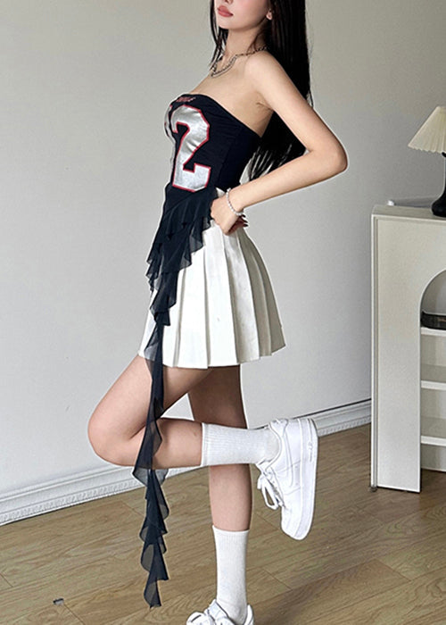 New Navy Strapless Ruffled Print Cotton Tops Sleeveless KK072