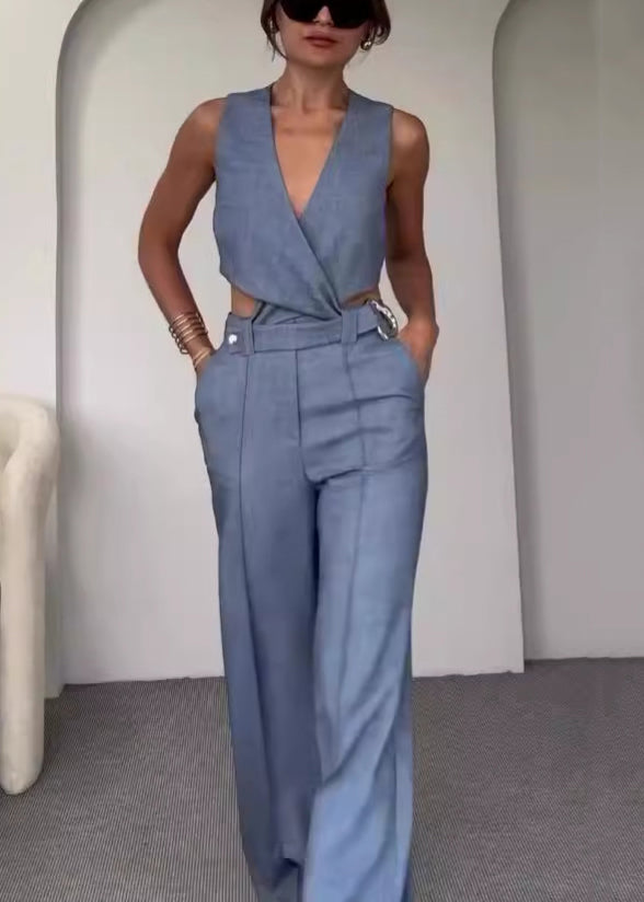 Introducing the opulent New White V Neck Pockets Solid Cotton Two Pieces Set Sleeveless by BB044. Elevate your style with this luxurious and tasteful ensemble, featuring a classic V-neck and convenient pockets. Crafted from high-quality cotton, this set exudes exclusivity and sophistication.