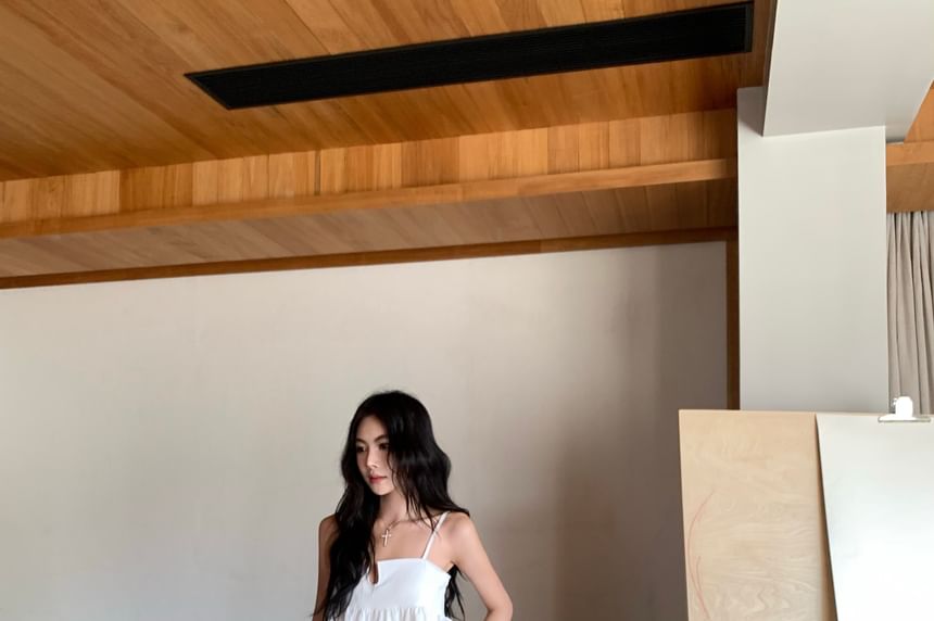 Notch Leg Wide Print Neck / Plain High Top Camisole Waist Pants Floral