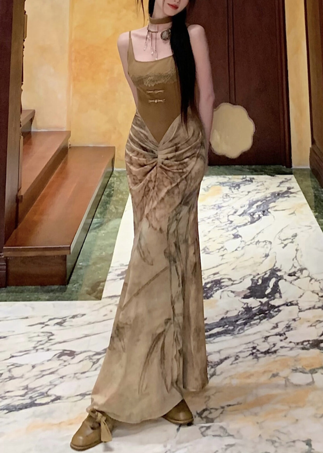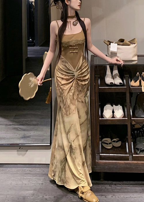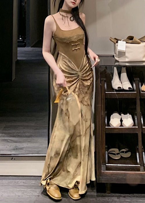 Experience elegance in our Novelty Olive Green Wrinkled Patchwork Cotton Spaghetti Strap DressSleeveless, crafted with precision and sophistication. This dress exudes exclusivity and luxury, made with premium fabric and featuring a unique patchwork design. The sleeveless style adds to its tasteful charm and can be dressed up or down for any occasion. Enhance your wardrobe with this exquisite dress.