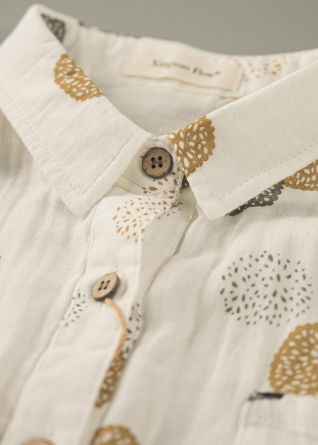 Orange Tops Spring Oversized Print Fitted Shirt Cotton