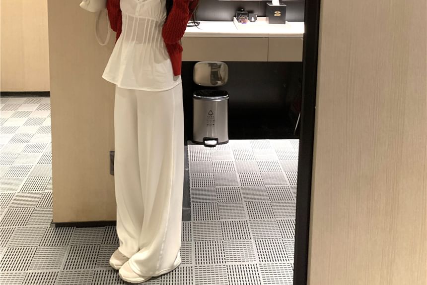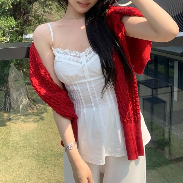 Plain Pintuck Panel Lace Camisole Top / Plain Cardigan