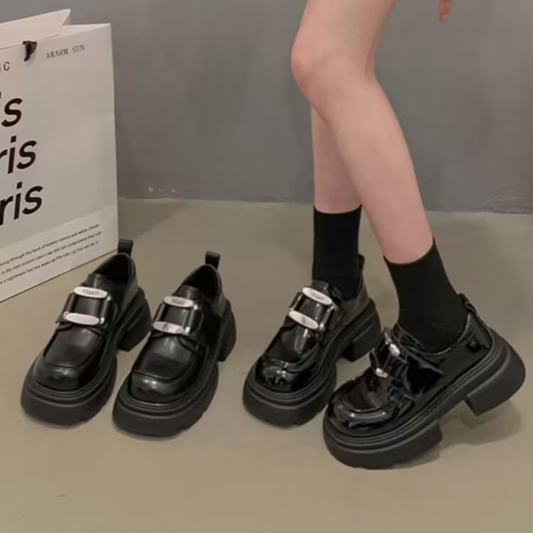 Platform Chunky Heel Buckled Loafers