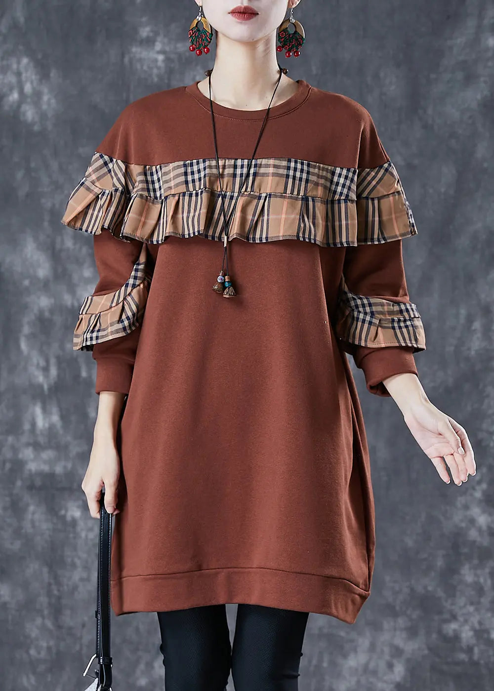 Introducing our Ruffled Cotton Sweatshirts Dress for Fall - a cozy and stylish must-have for chilly days! With ruffles and soft cotton, this dress combines comfort and fashion effortlessly. Perfect for a playful and unique look.