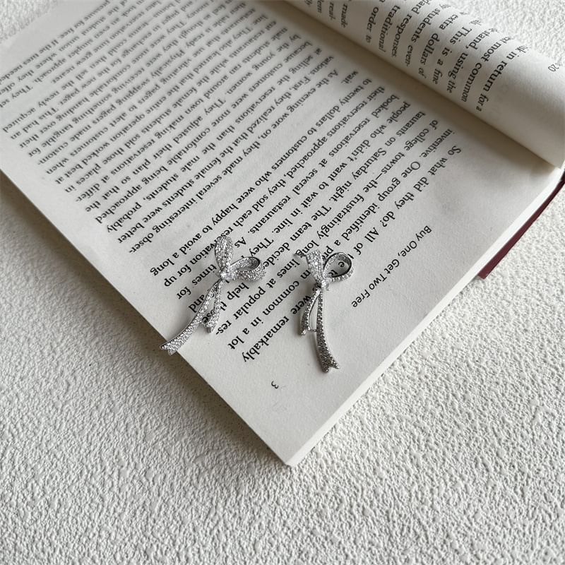 Rhinestone Dangle Bow Earring Alloy