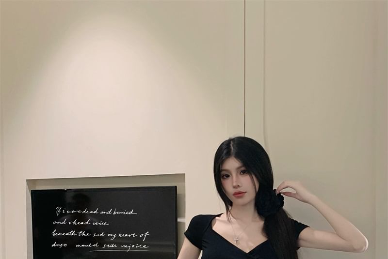Mid Rise Plain Ruffle Asymmetrical Panel Mini A-Line Skirt