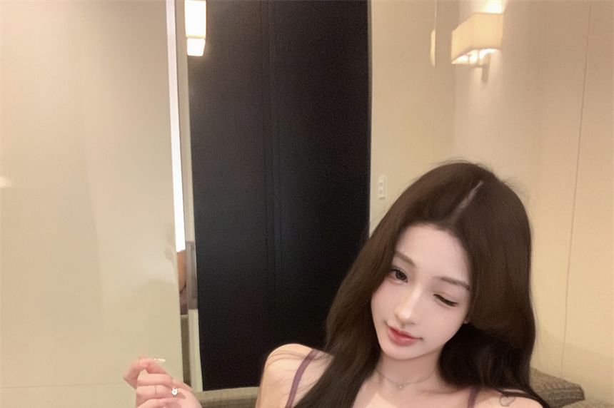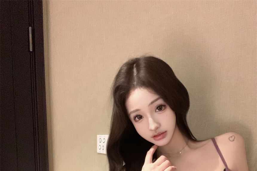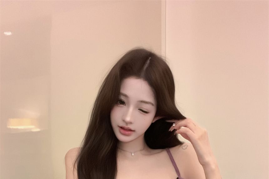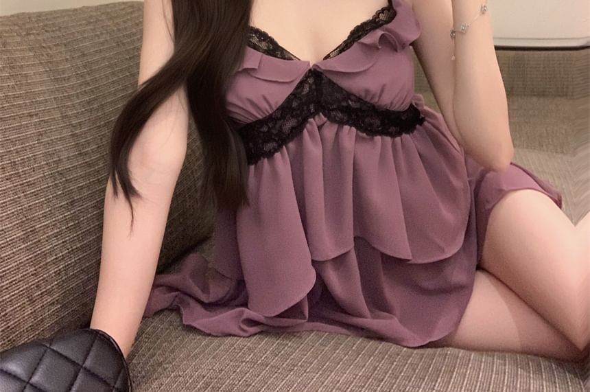 Ruffle Trim Lace Panel Flowy Cami Top