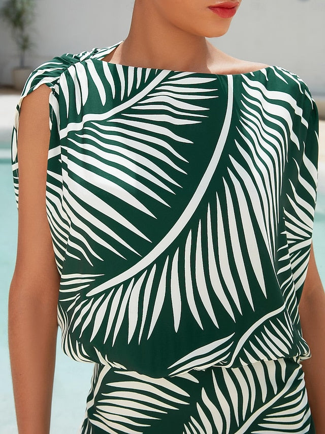 Dresses Type: Print Dress, Midi Dress, Fabric: Satin, Gender: Women's, Occasion: Daily Wear, Vacation, Design: Printing, Style: Beach, Fabric Properties: LuxeSatin - Discover the essence of quiet luxury in our exclusive Subtly Glossy Luxe Satin, it is drapey and sleek like silk., Trends: Breathable, Elegant, Print, Neckline: Bateau, Sleeve Length: Raglansleeve, Sleeve Type: Magyar Sleeve, Waistline: Natural, Elasticity: Inelastic, Look After Me: Machine wash, Dress Length: Midi, Pattern: Flower / Plants, Season: Spring & Summer, Looseness: Regular Fit,
