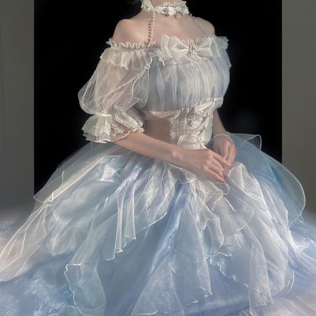 | Color: | Set - With Box - Dress & Choker & Belt - Light Blue & White |