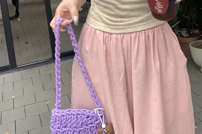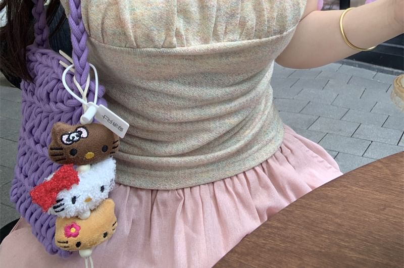 Short-Sleeve Square Neck Bow Ruffle Trim Slim Fit T-Shirt