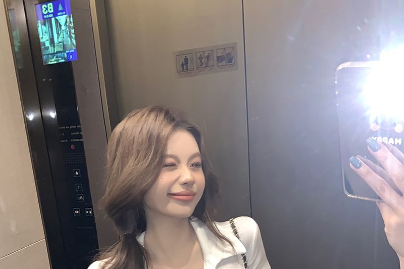 Short-Sleeve Collar Plain Slim Fit Tee