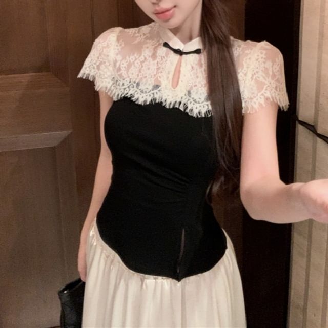 Short-Sleeve Top / Skirt Two High Tone Maxi A-Line Asymmetrical Waist