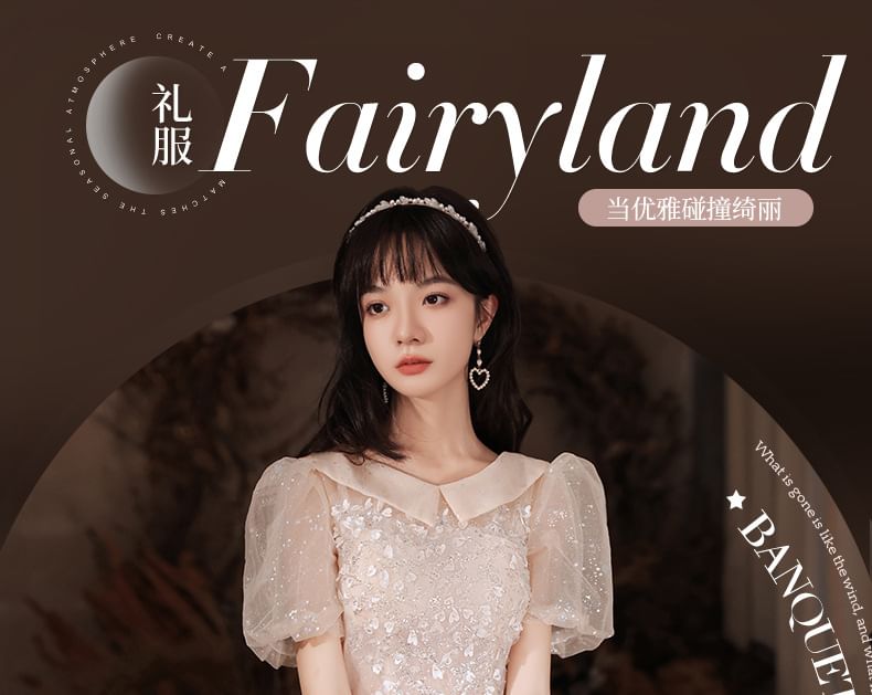 Short-Sleeve Collared Glitter A-Line Evening Gown (Various Designs)