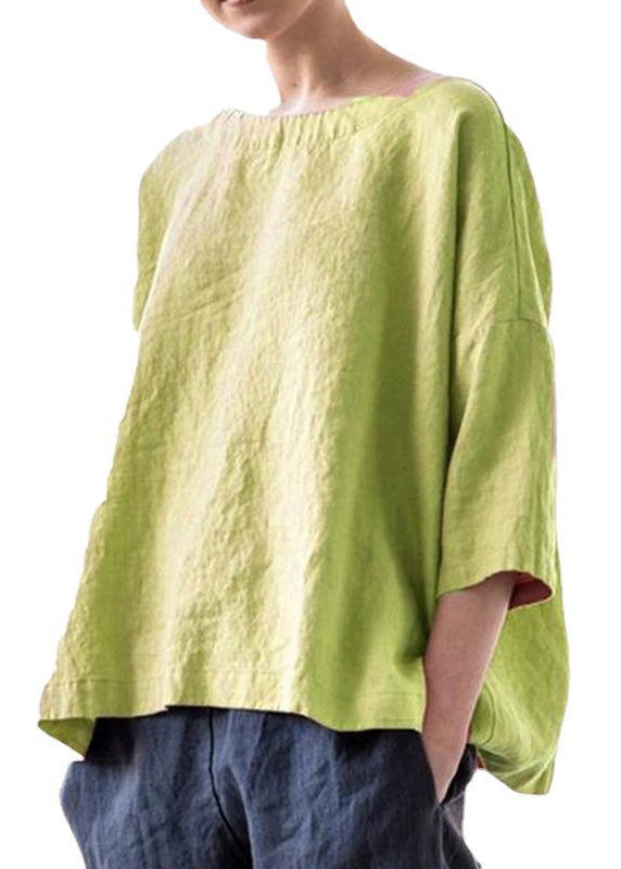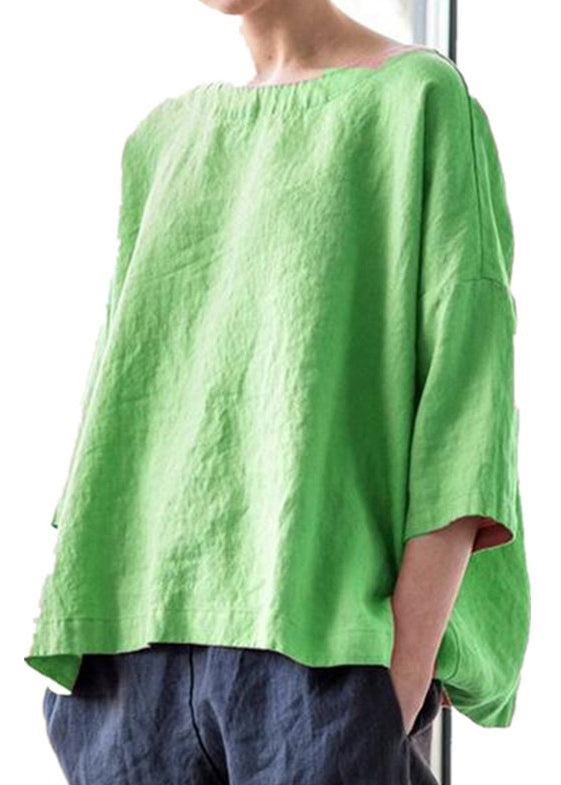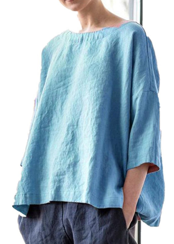 Simple Purple O-Neck Solid Cotton Blouse Bracelet Sleeve FF032