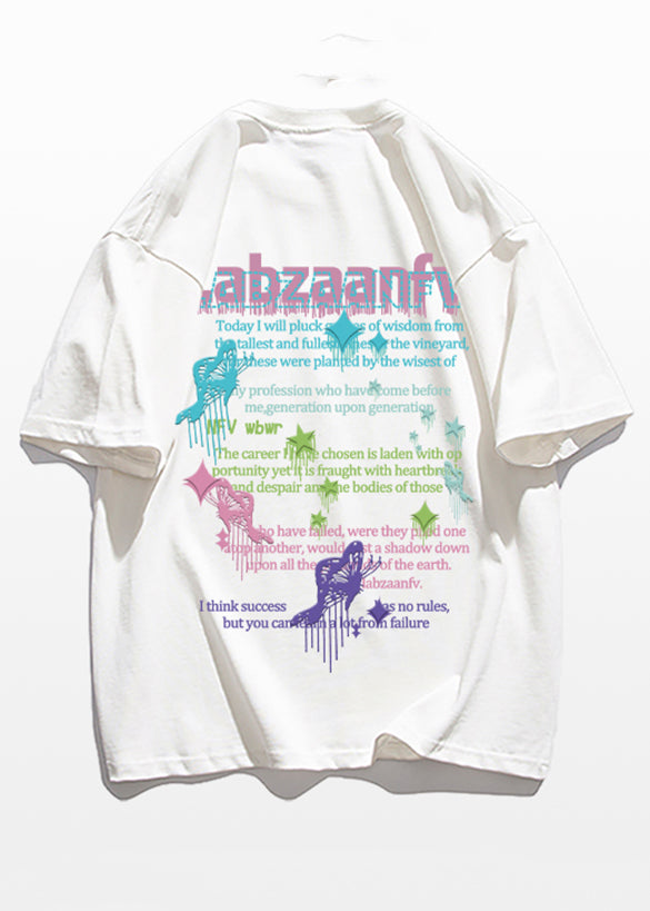 Simple White O-Neck Print Cotton Mens T Shirts Short Sleeve LK067