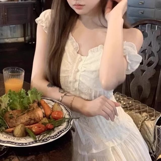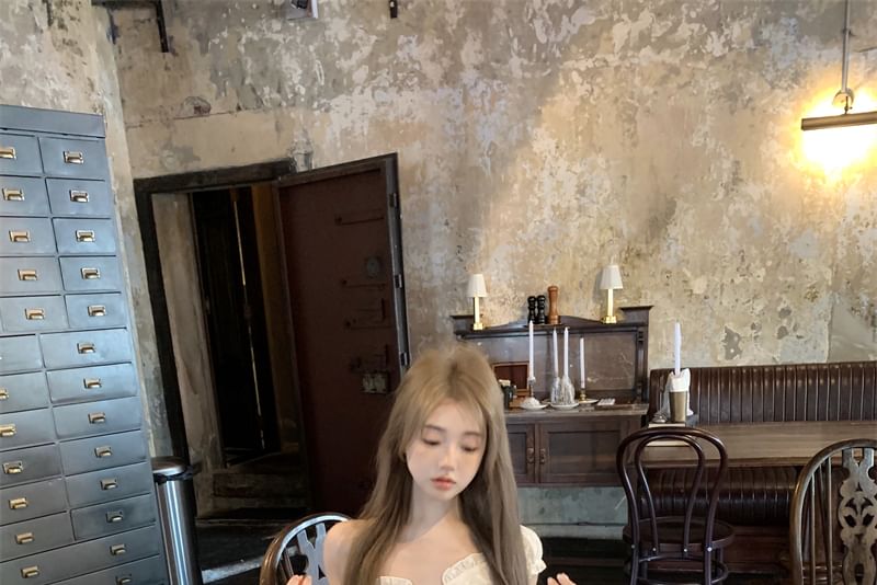 Slim Lace A-Line Mini Fit High Panel Blouse Skirt Short-Sleeve / Waist
