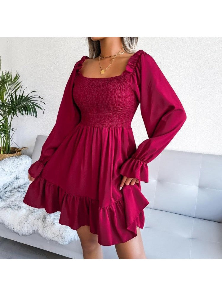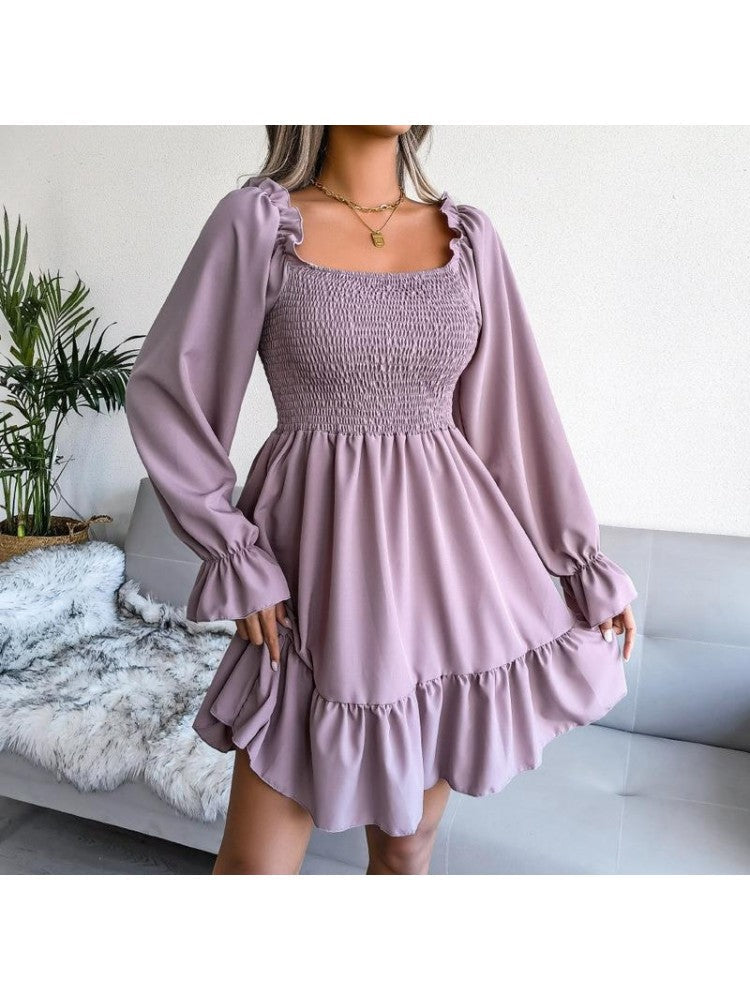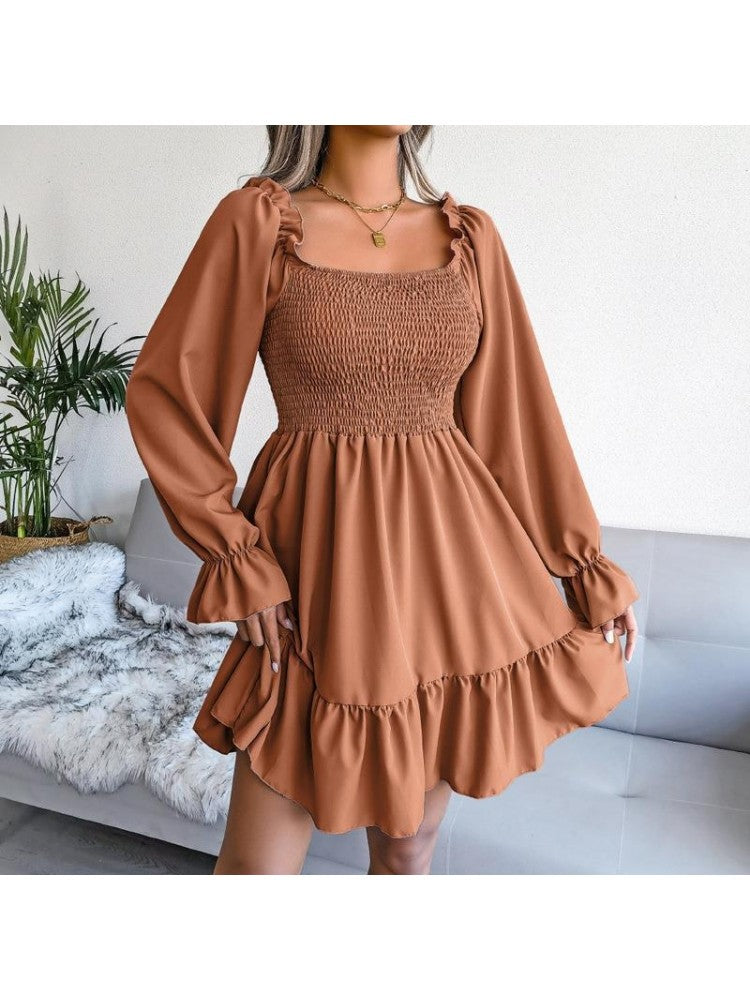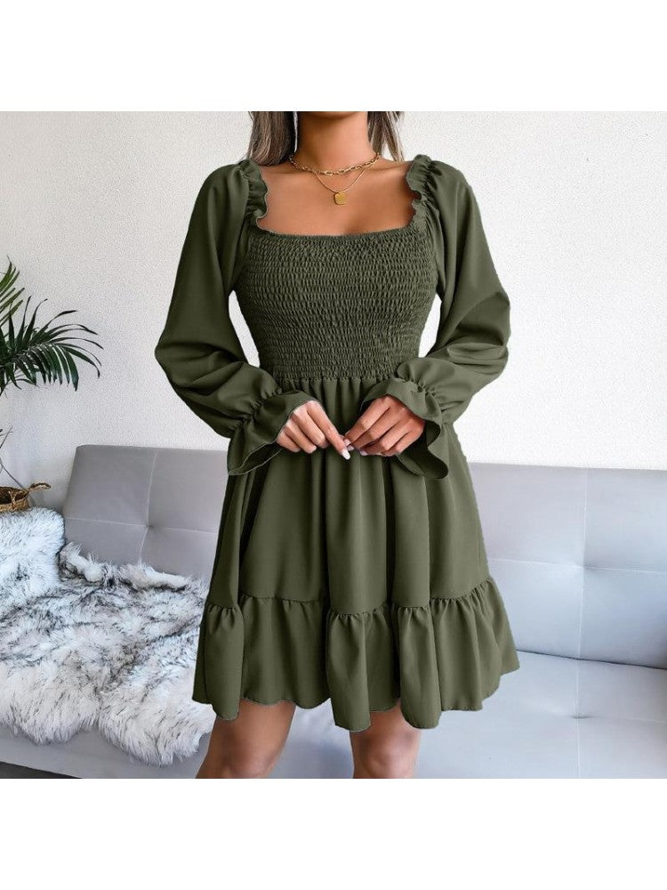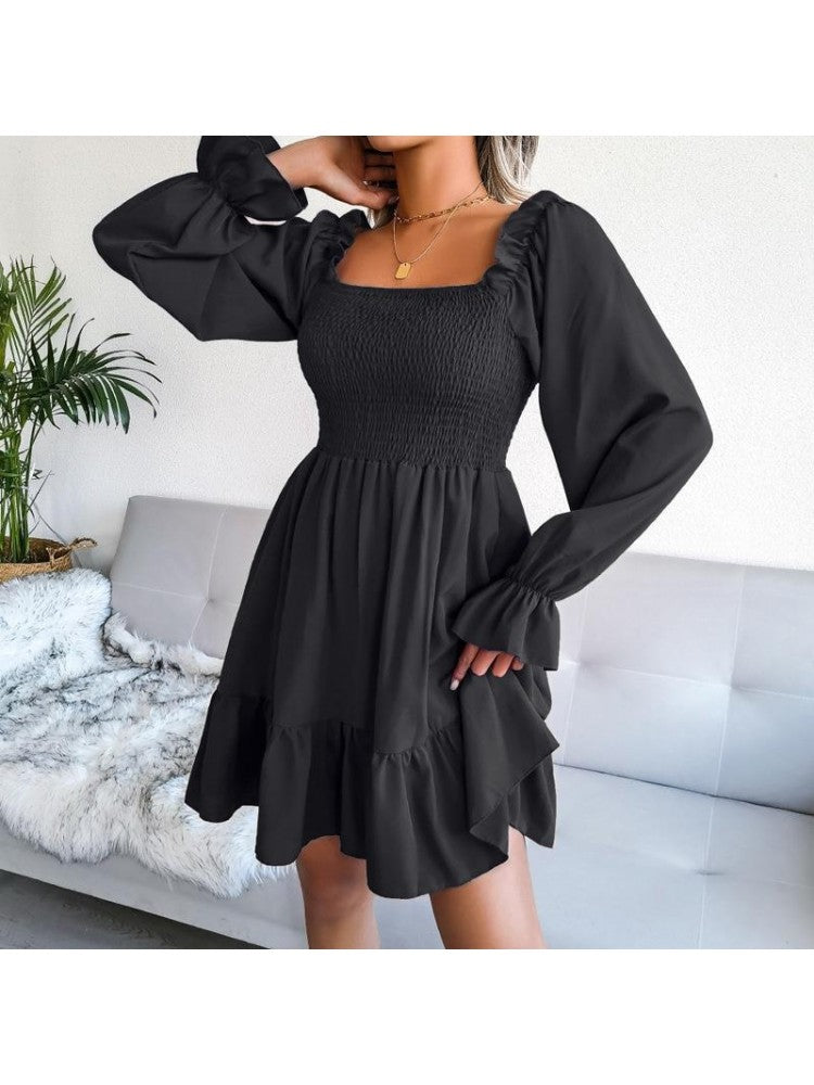 Square Neck Ruffles Puff Sleeve Short Dress QQ31