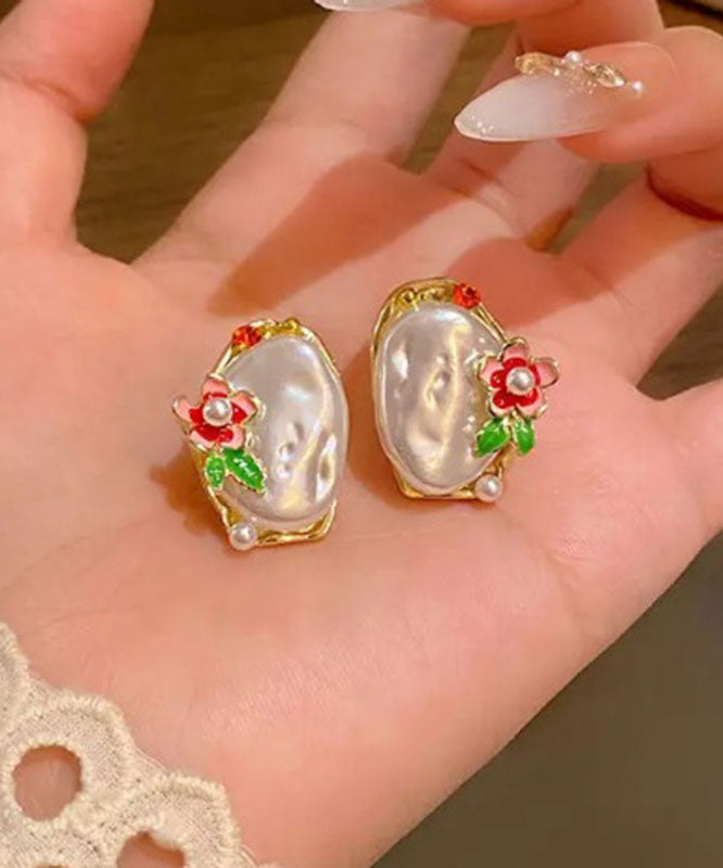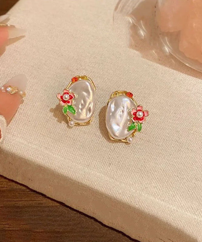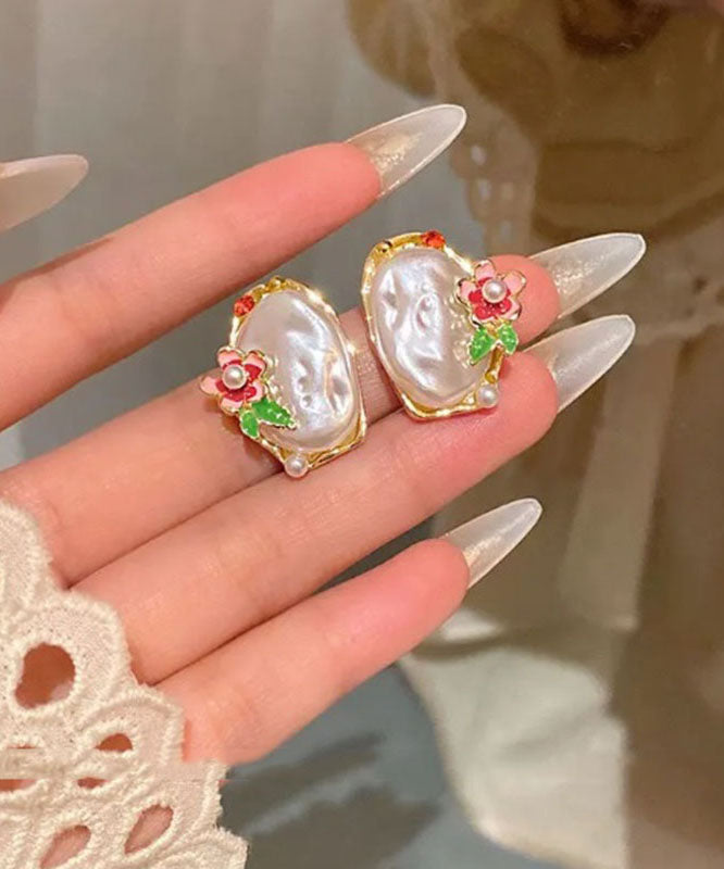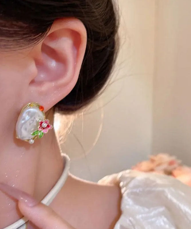 Beautiful White Copper Alloy Asymmetrical Pearl Stud Earrings