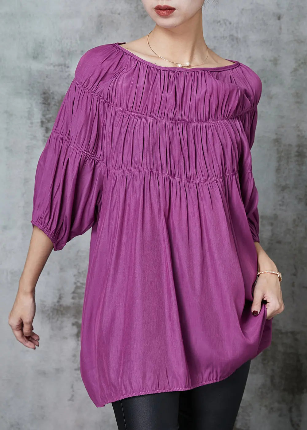 Style Purple Slash Neck Wrinkled Cotton Shirt Bracelet SleeveFabric: Cotton Blended