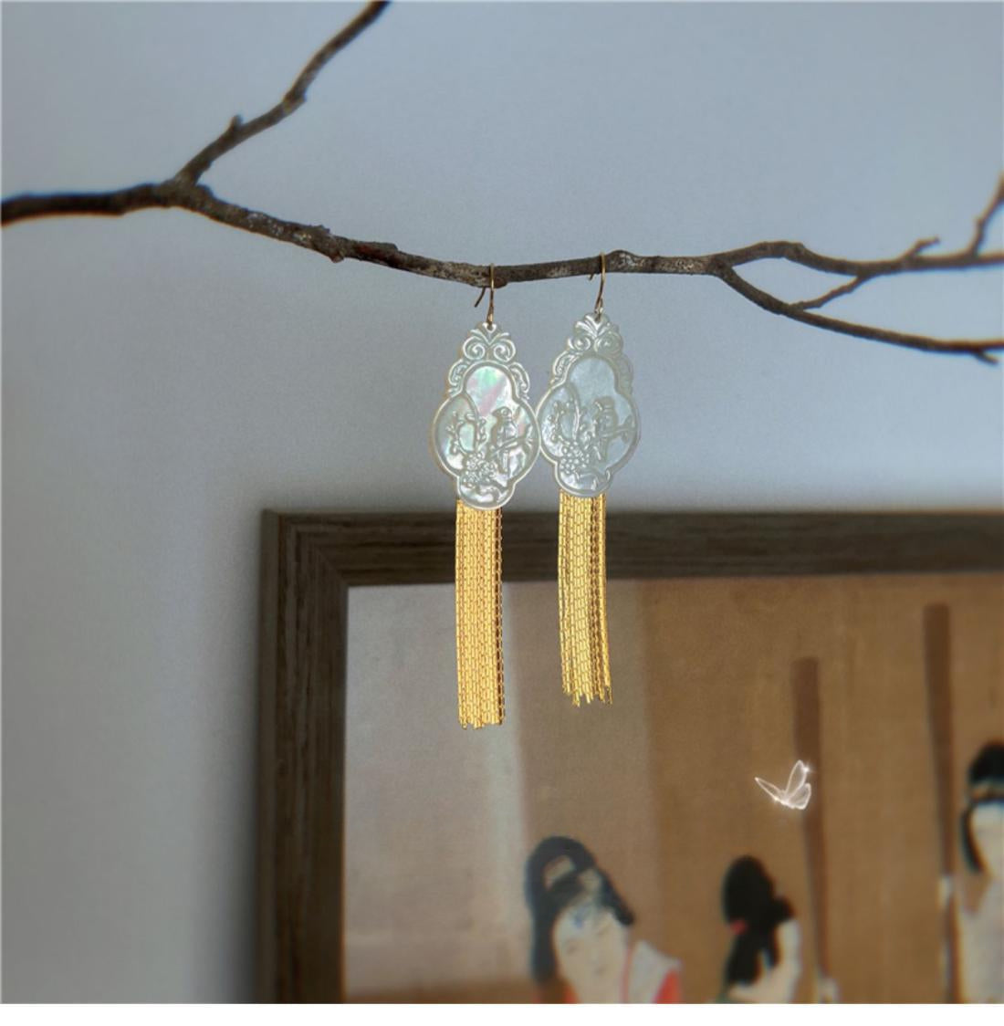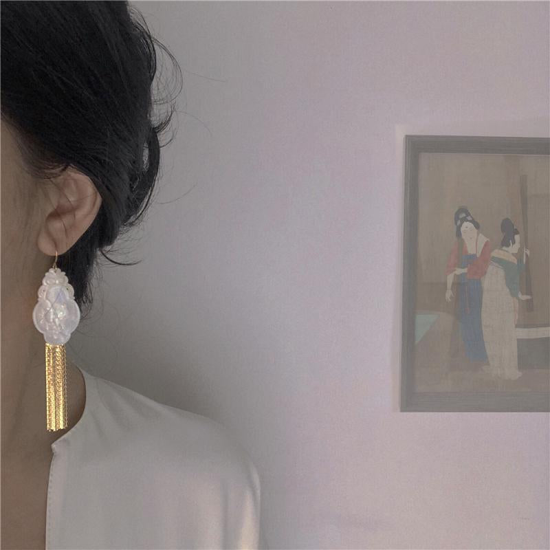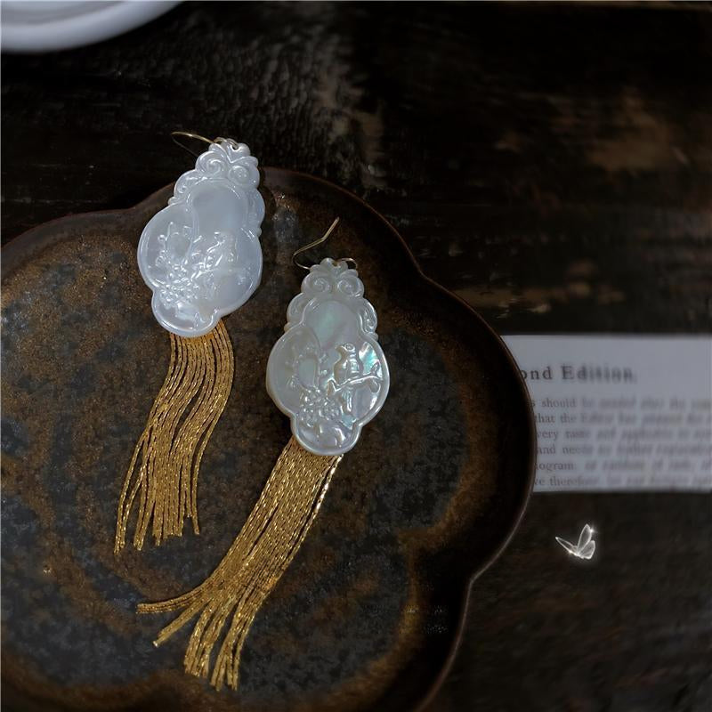 Style White Sterling Silver Floral Bird Tassel Drop Earrings ML0349