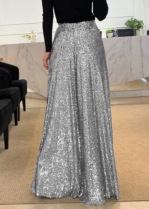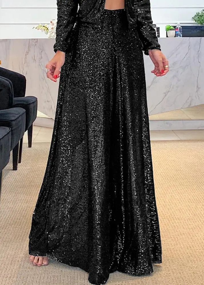 Stylish Brown Sequins High Waist Wide Leg Pants Summer PP039