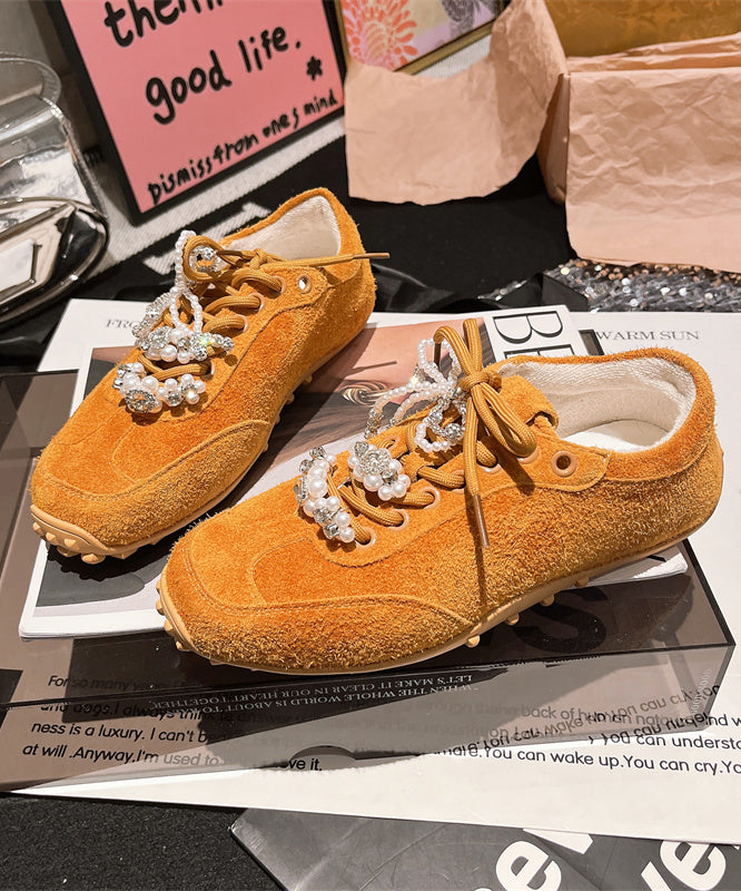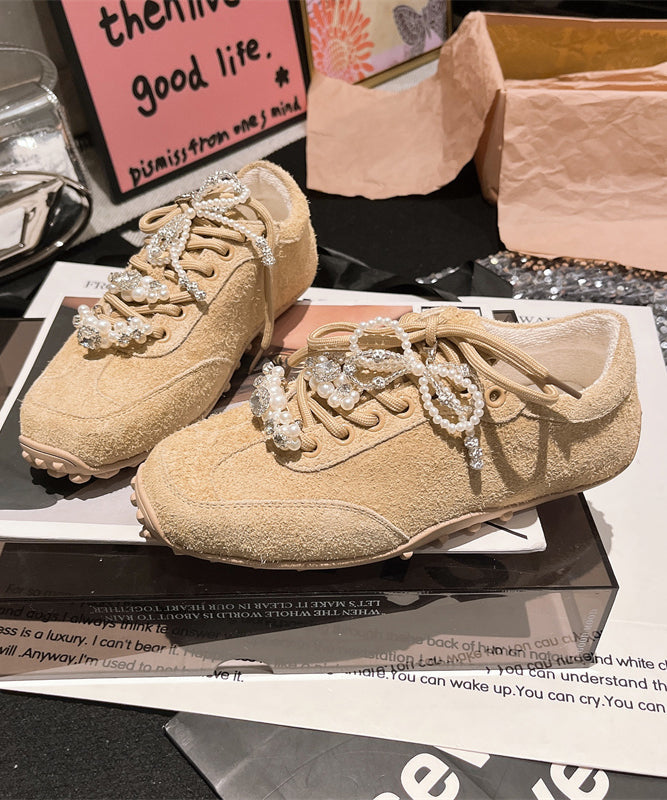 Suede Chic Lace Splicing Zircon Purple Up Pearl Flats