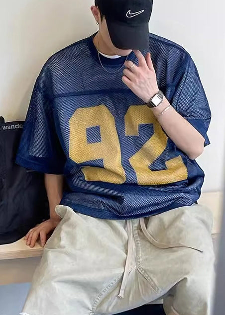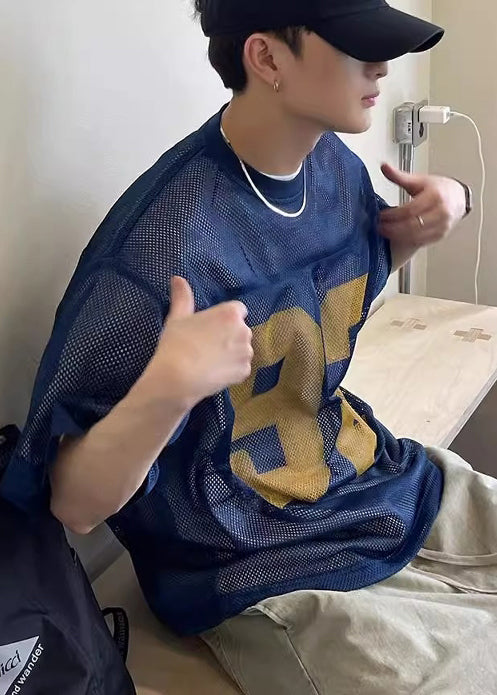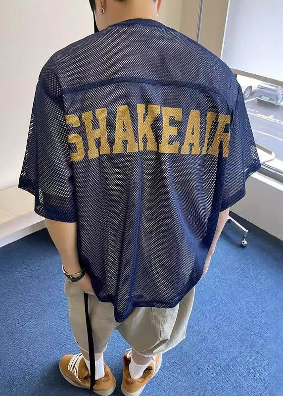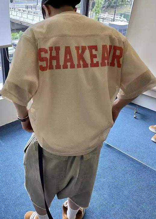 Chic Khaki Oversized Hollow Out Tulle Mens Graphic Tees Summer