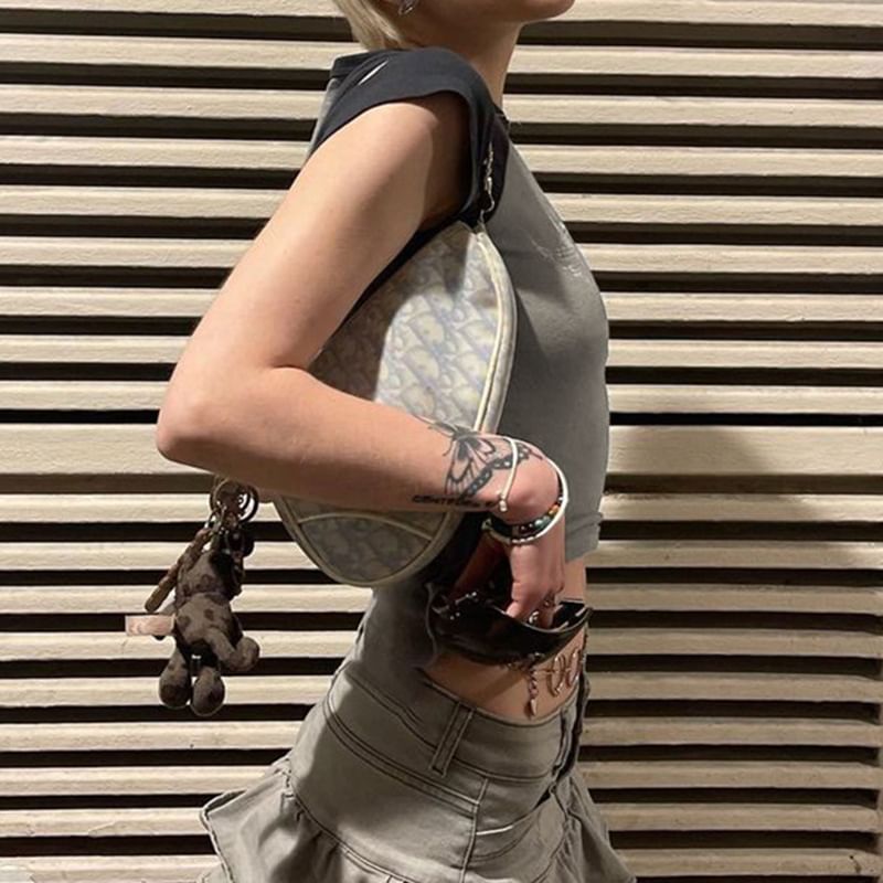 Cap-Sleeve Graphic Print Raglan T-Shirt