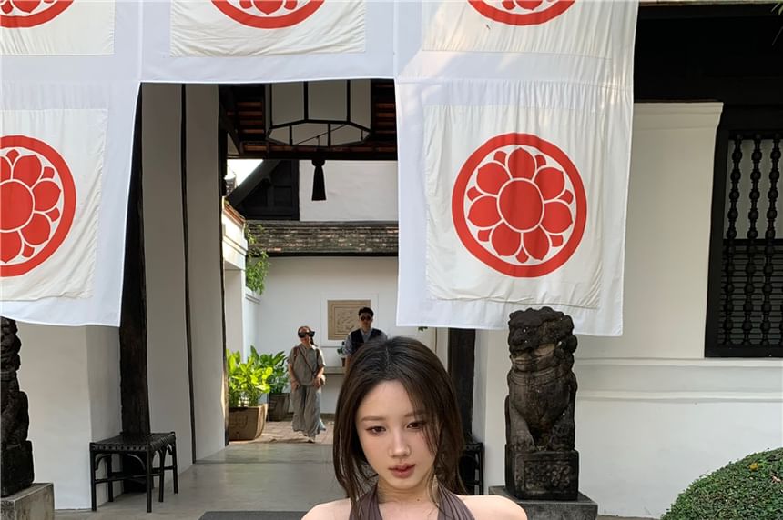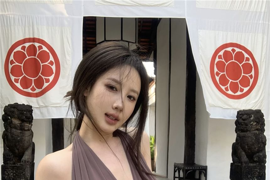 Halter Plain Open Back Crop Slim Fit Tank Top