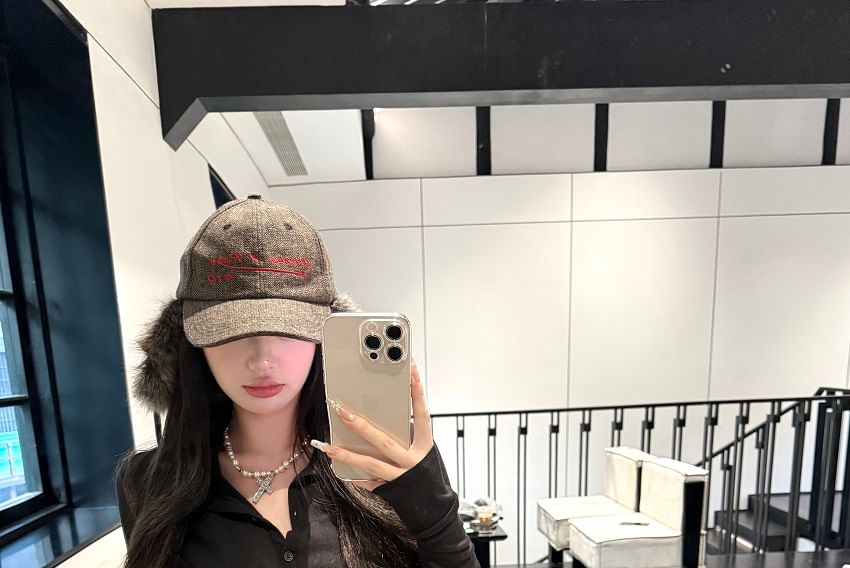 Long-Sleeve Collar Plain Cropped Tee / Low Rise Inverted Pleated Wide Leg Pants