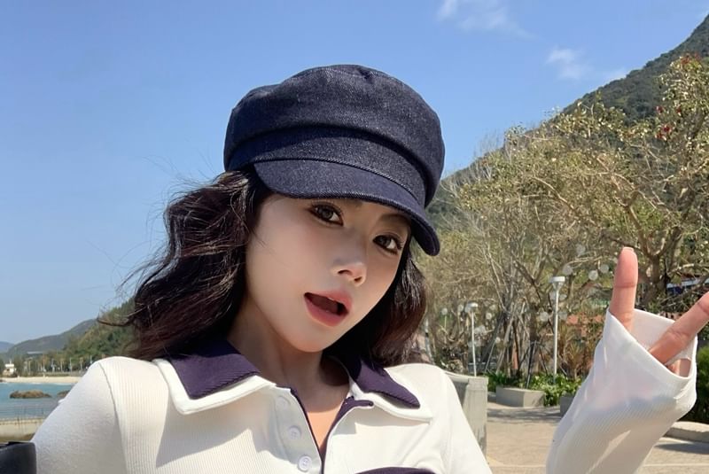 Tee Long-Sleeve Plain Collar Contrast High / Tube Pencil Mini Tie-Front Skirt Waist Top Trim