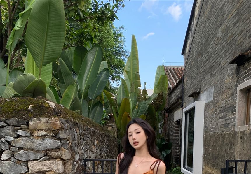 Tie Camisole Dye Shoulder Top Asymmetrical