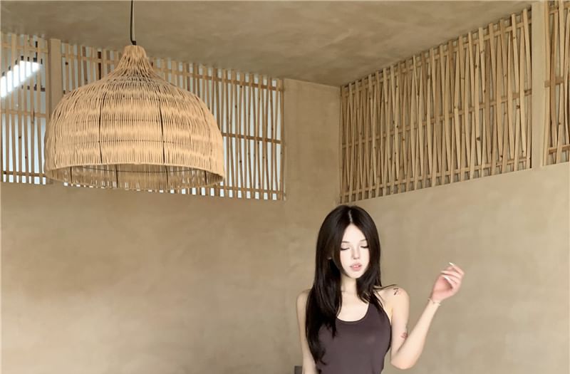 Scoop Neck Plain Tie Waist Halter Top / High Waist Maxi A-Line Skirt