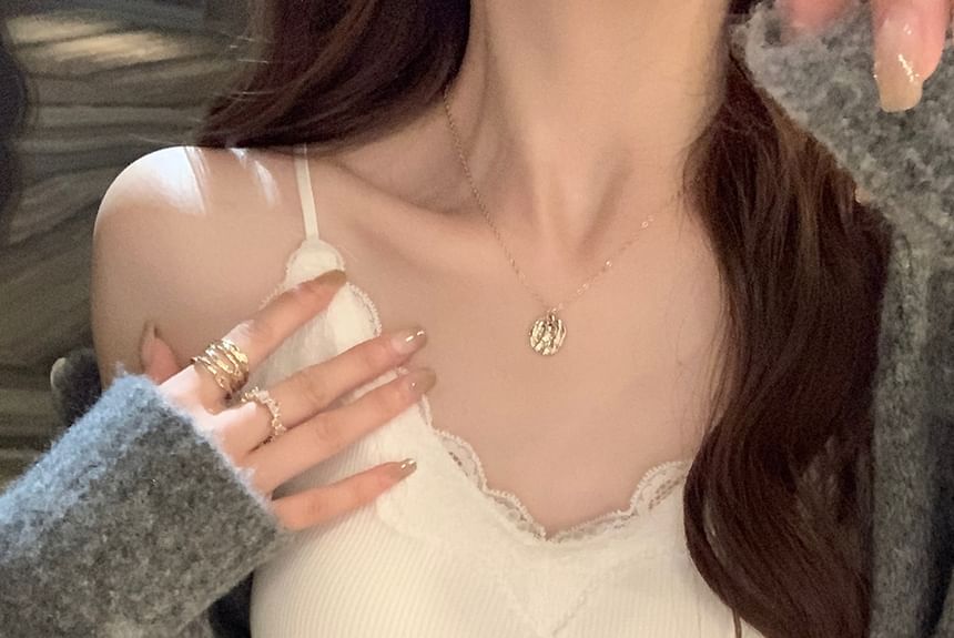 Trim Plain Top Camisole Padded Lace Ribbed
