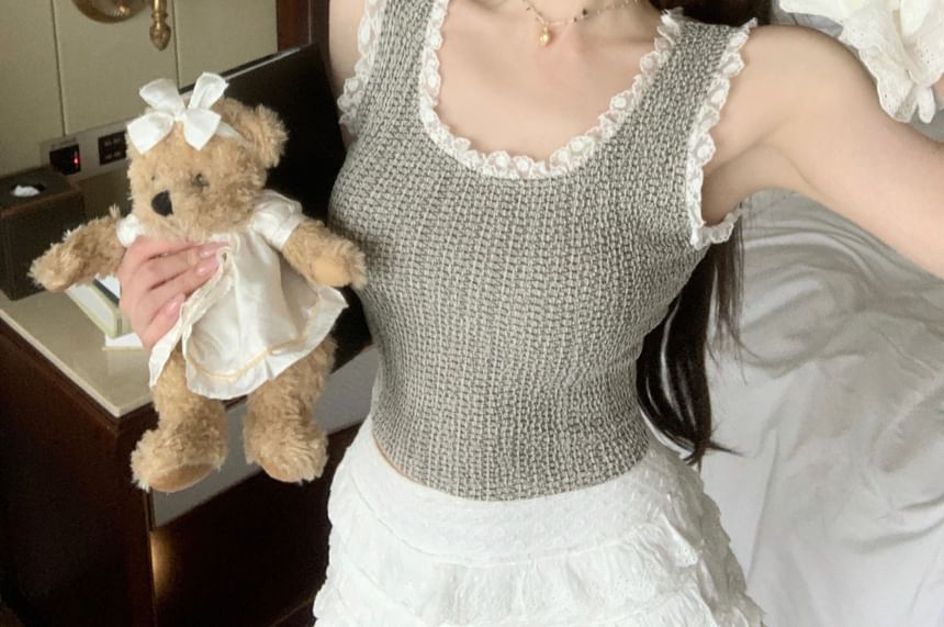 Scoop Neck Lace Trim Crop Slim Fit Tank Top