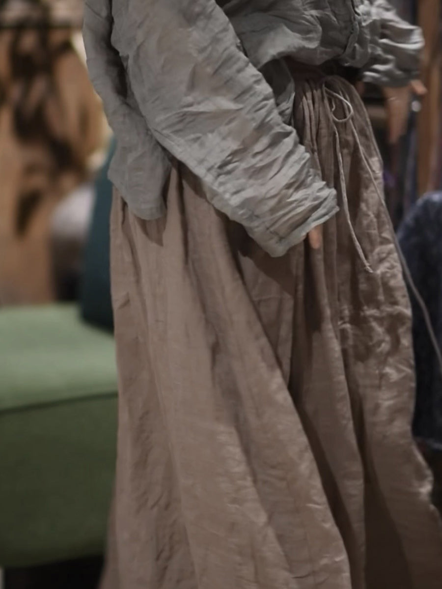 Vinage Summer Loose Women Ramie Skirt Colorblock