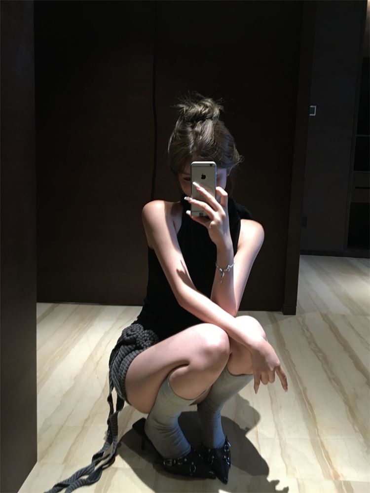 Waist Flower Neck Mock Mini Skirt Top Halter Plain Pencil Low / Detail