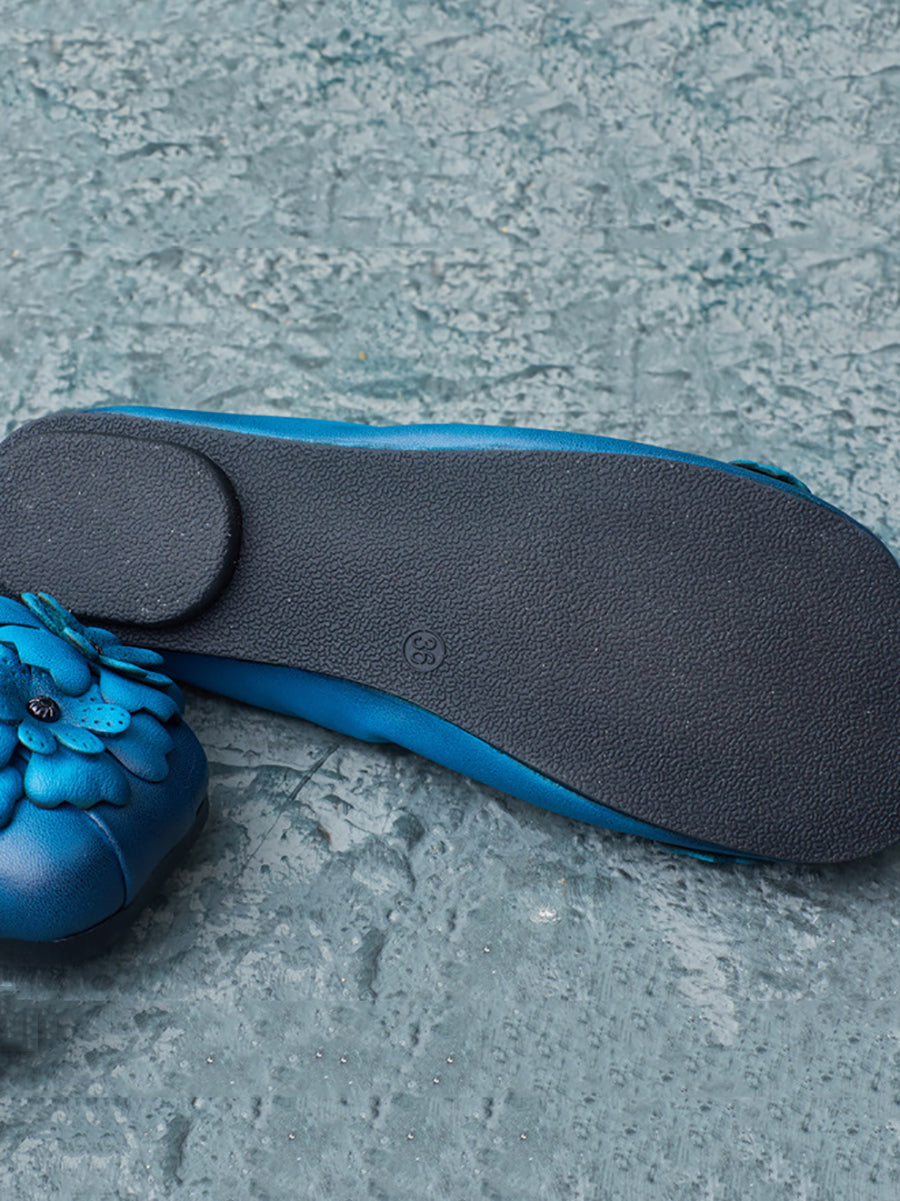 Women Artsy Summer Leather Flower Spiced Flat Shoes ZZ1041