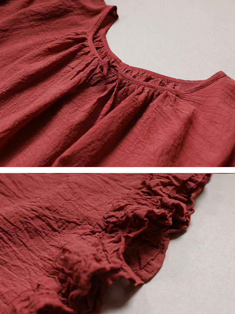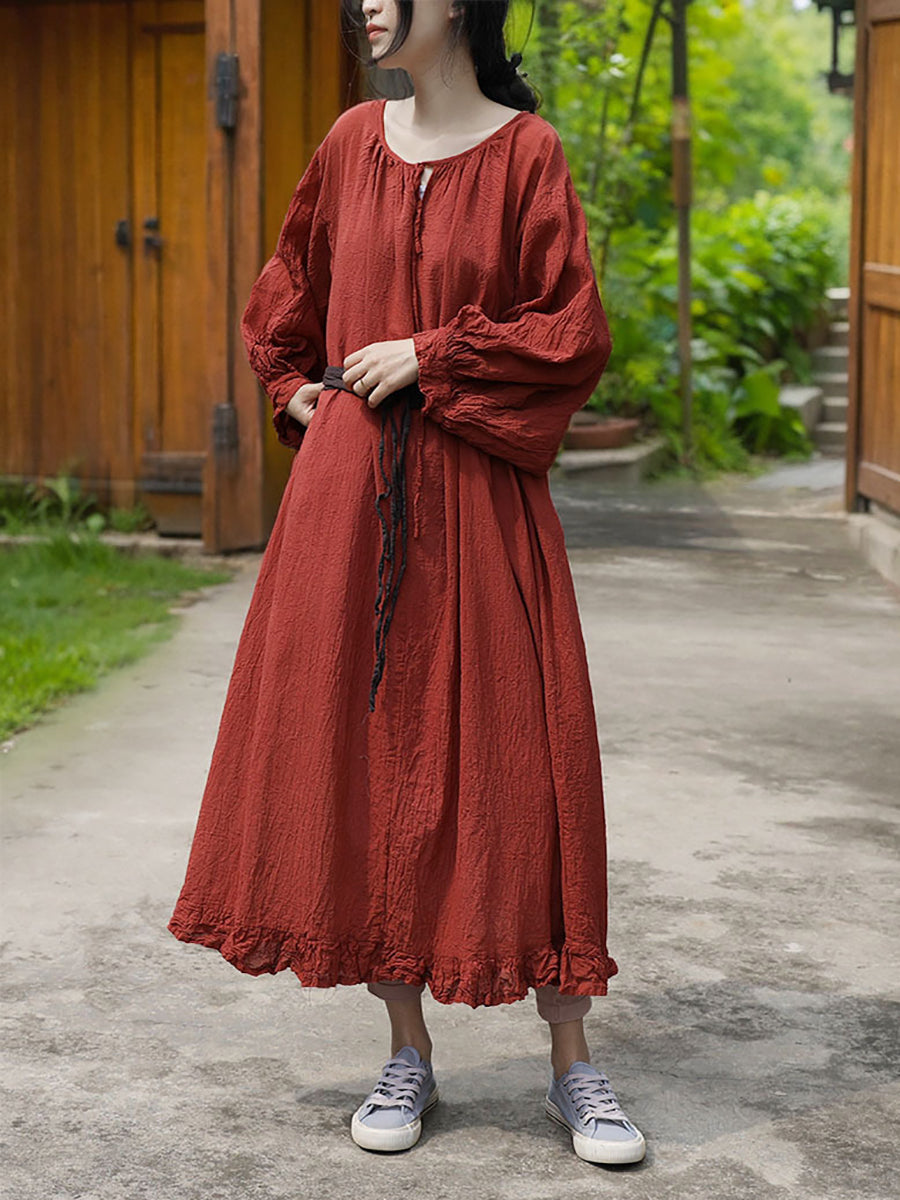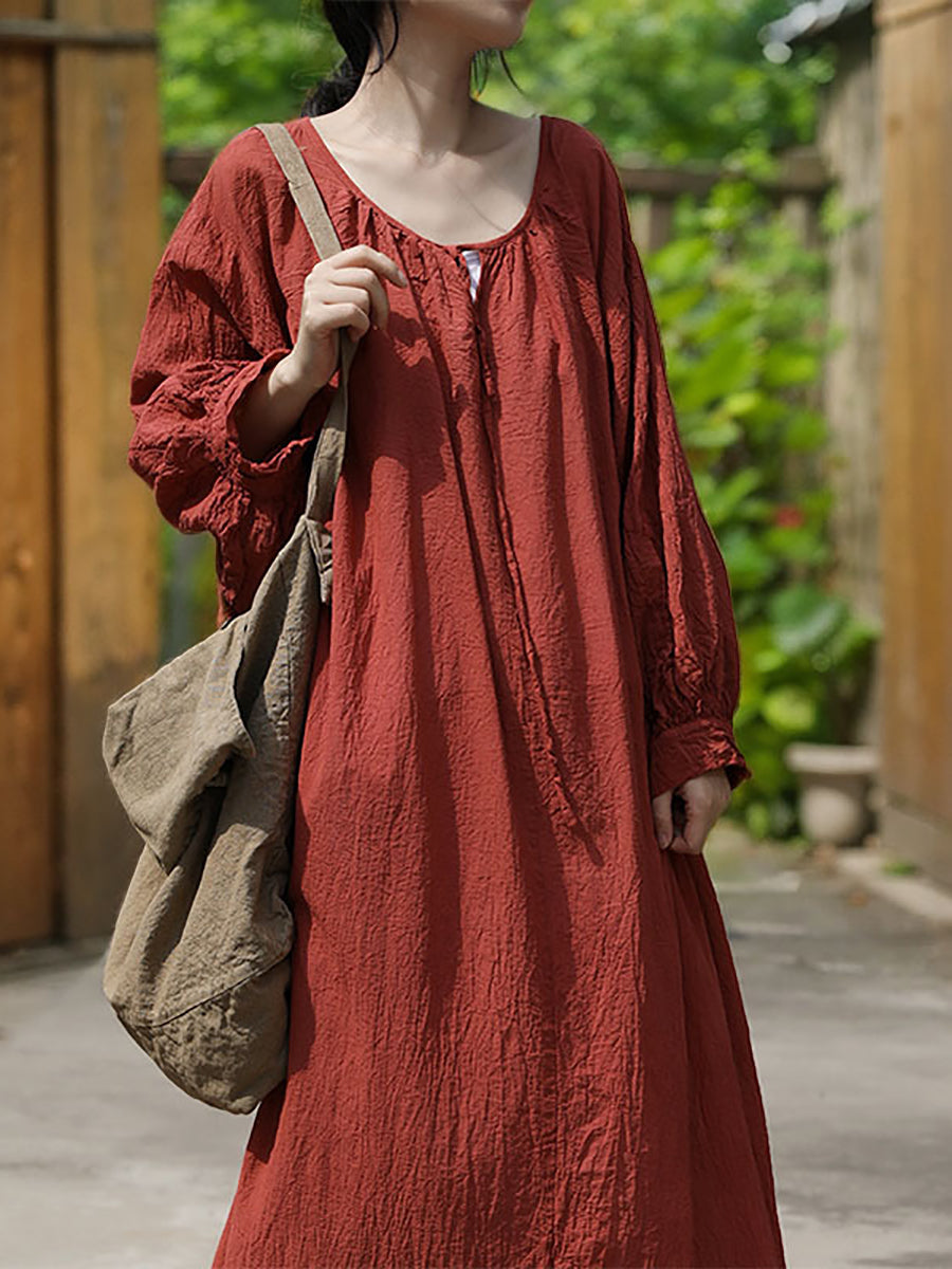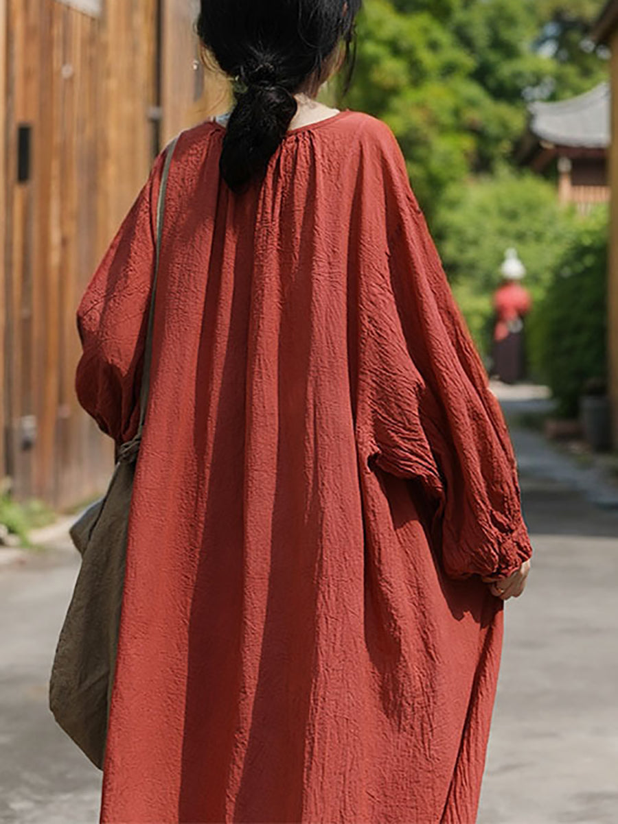 Women Artsy Summer Solid Loose Cotton Dress KL1003
