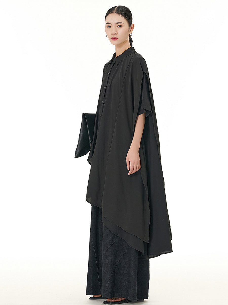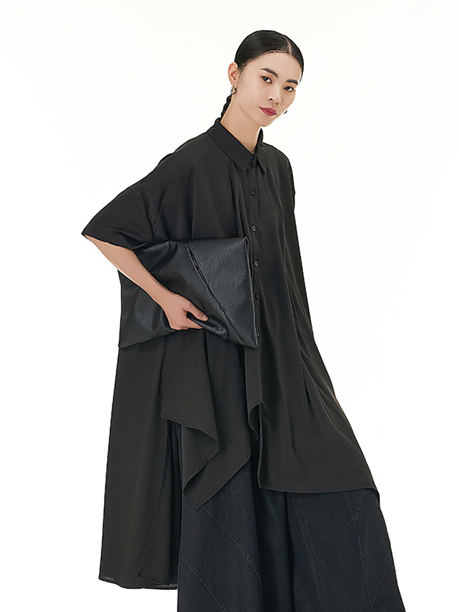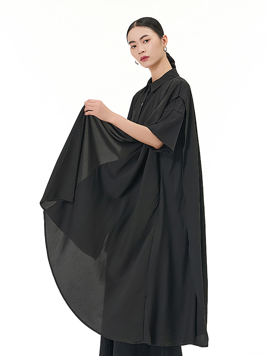 Elevate your casual wardrobe with our Women's Summer Dot Irregular Hem Loose Shirt KL1002. Made from high-quality polyester, this shirt boasts a sophisticated solid and dot pattern, highlighted by a turn-down collar and short raglan sleeves. Perfect for spring and summer, this shirt exudes elegance and exclusivity.