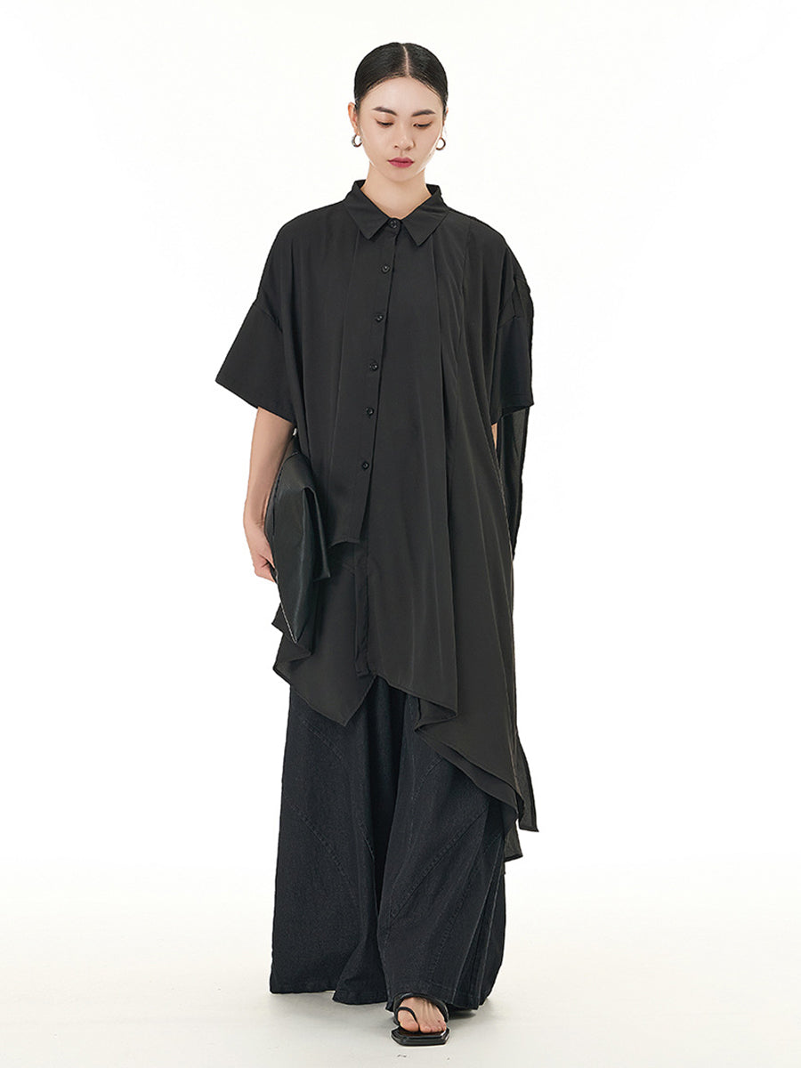 Women Casual Summer Dot Irregular Hem Loose Shirt KL1002