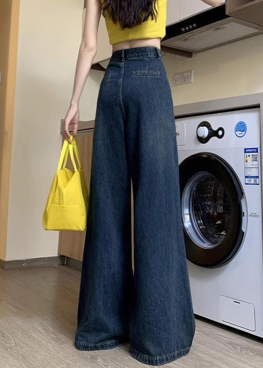 These denim wide leg pants for women in a classic denim blue color feature stylish button closures and functional pockets, making them the perfect addition to your summer wardrobe.
