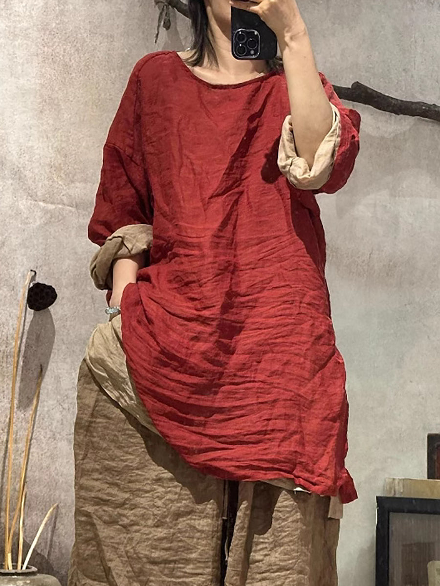 Women Pure Summer O-Neck Shirt Ramie Color Artsy