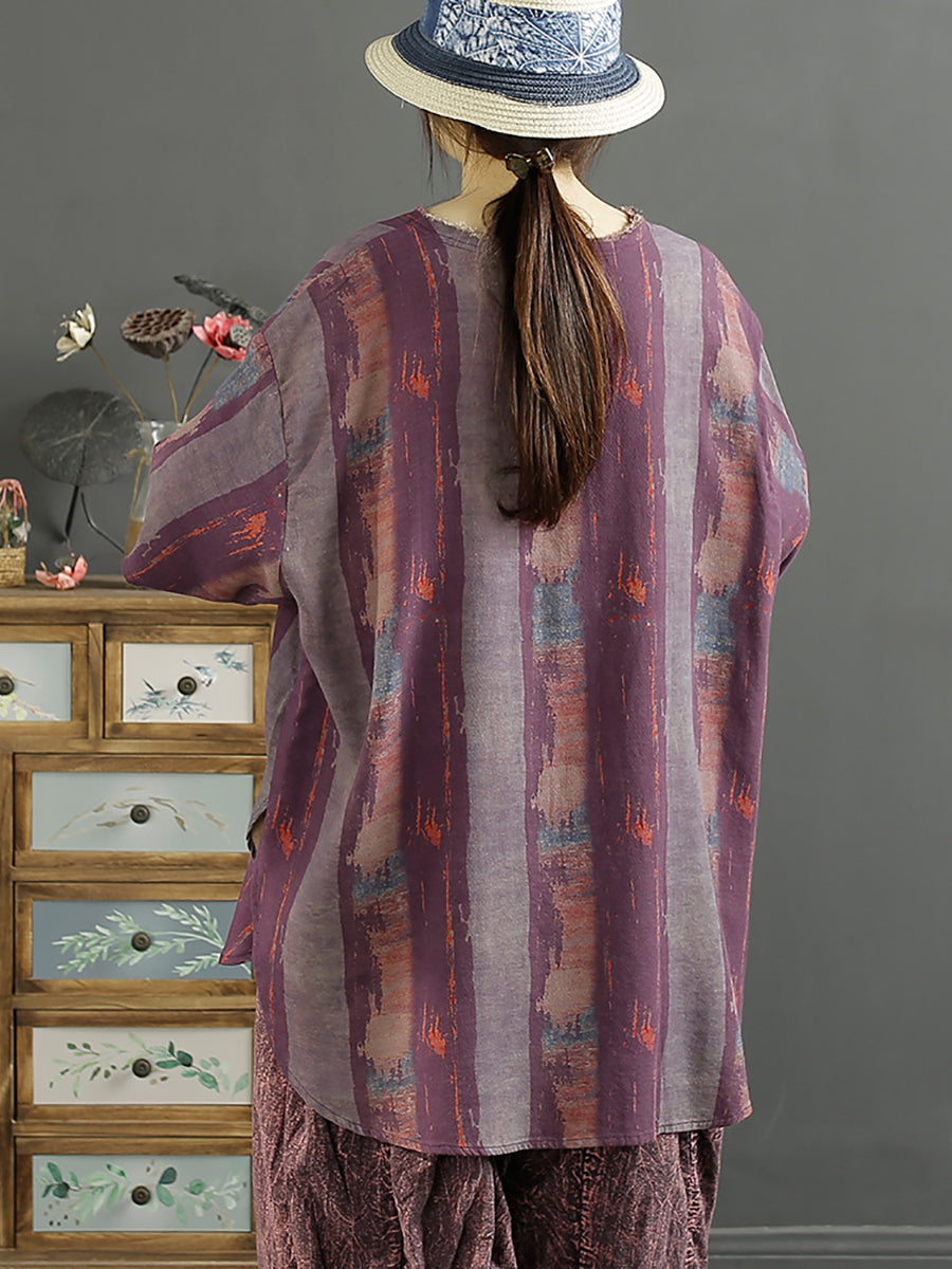 Indulge in the luxurious blend of Ramie and Cotton with our Women's Summer Artsy Floral Spliced V-Neck Cotton Shirt KL1010. The exquisite floral pattern and V-neck collar, along with half raglan sleeves, create an artistic and tasteful look.