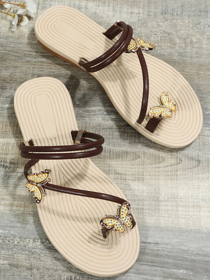 Rhinestone & Butterfly Decor Toe Ring Strappy Sandals QAS14