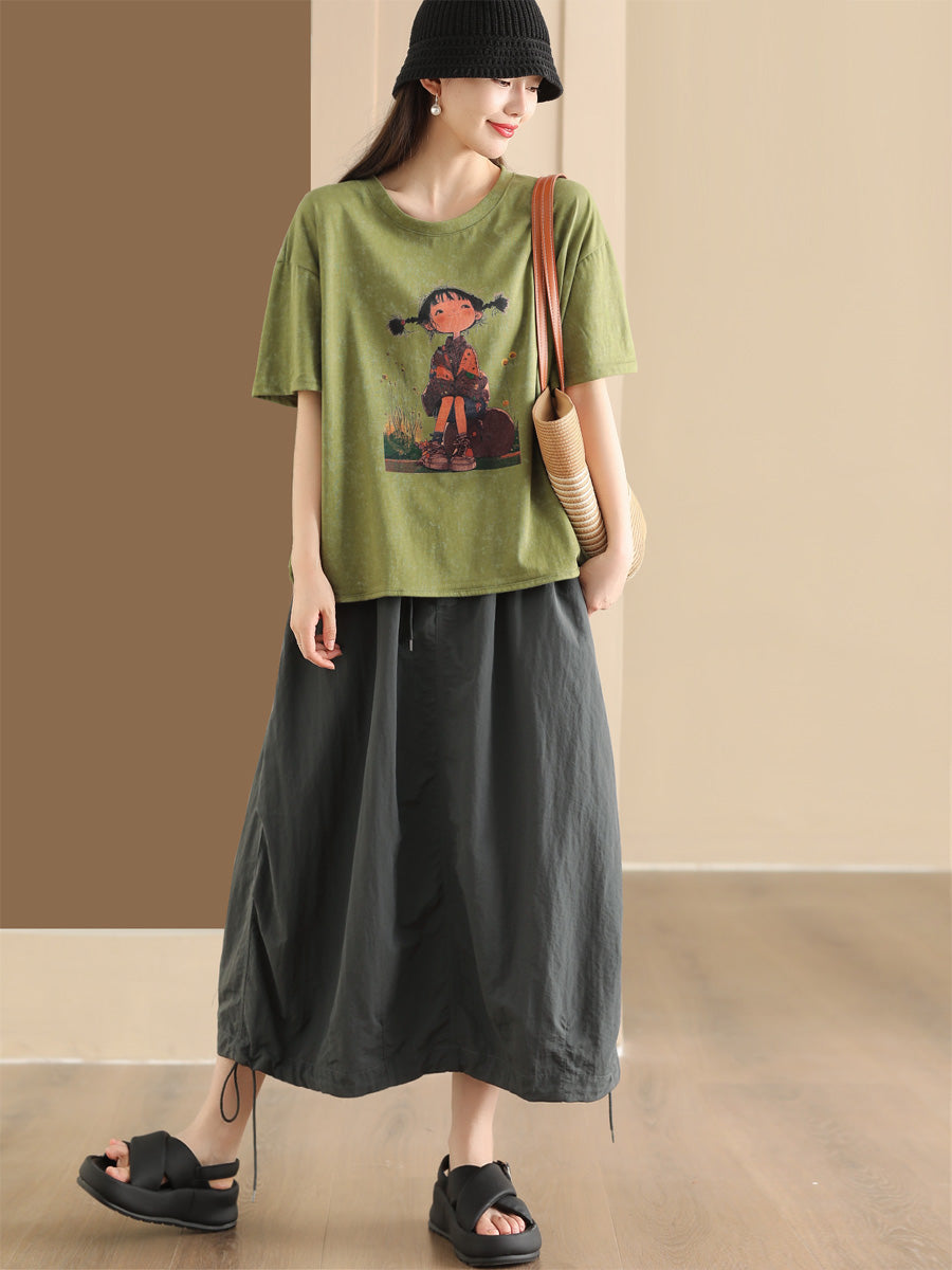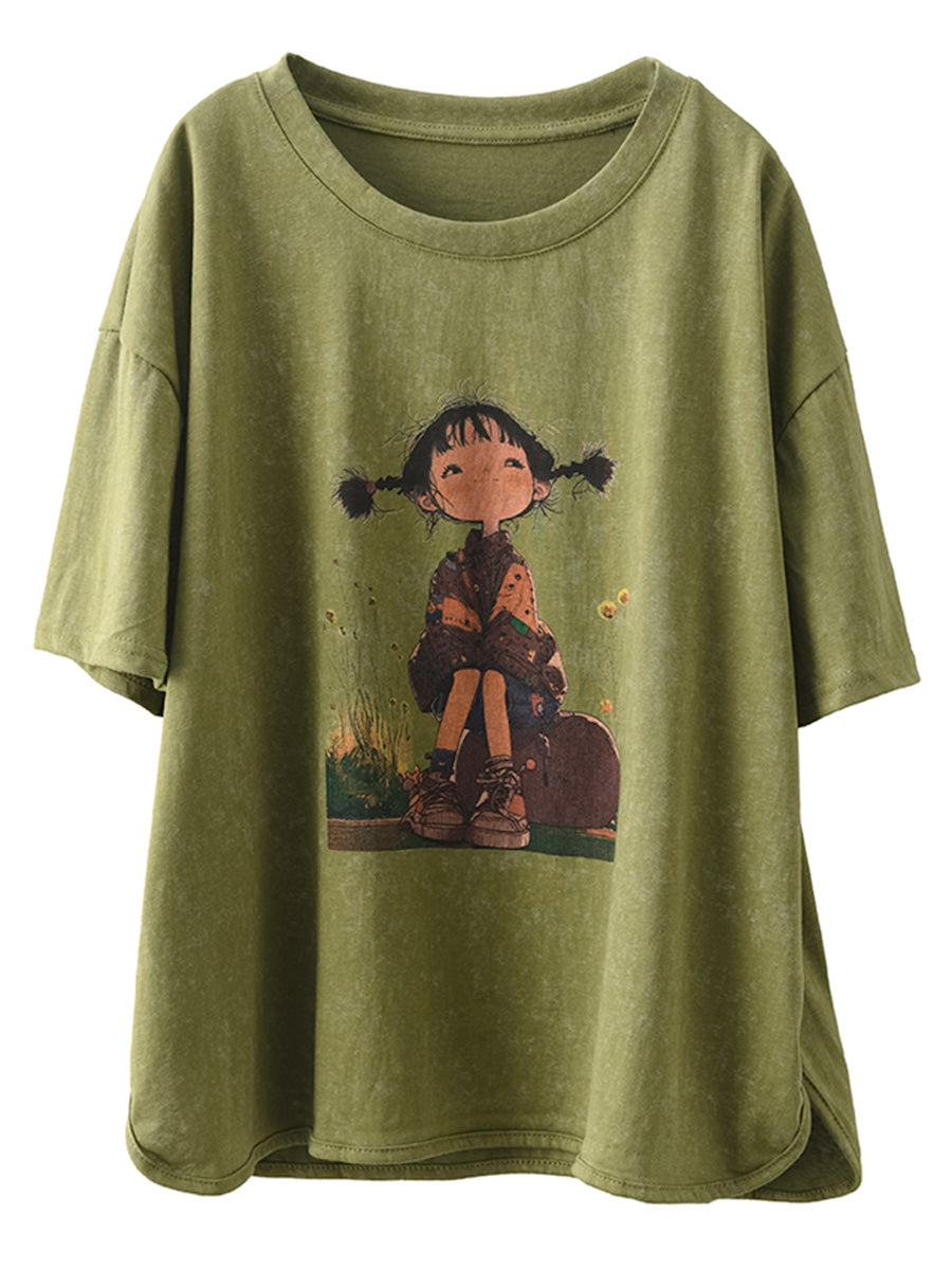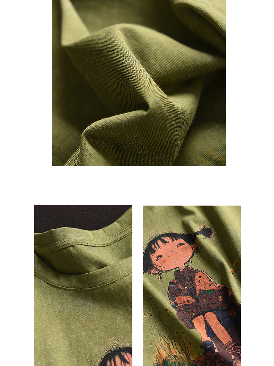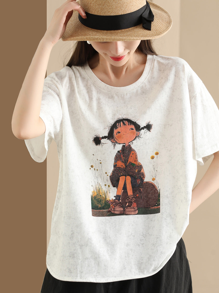 Women Summer Casual Print Retro Pullover Cotton Shirt OO1047