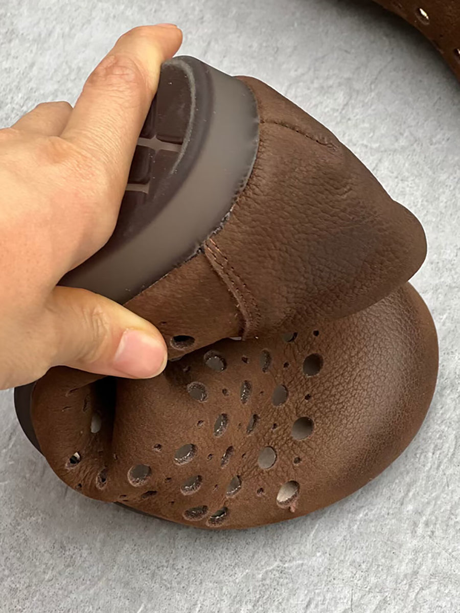 Enhance your summer wardrobe with these exquisite Women Summer Genuine Leather Hollow Out Flat Shoes. Crafted from the finest geniune leather, these shoes showcase elegant hollow out details that elevate any outfit. Perfect for a luxurious yet comfortable summer look.